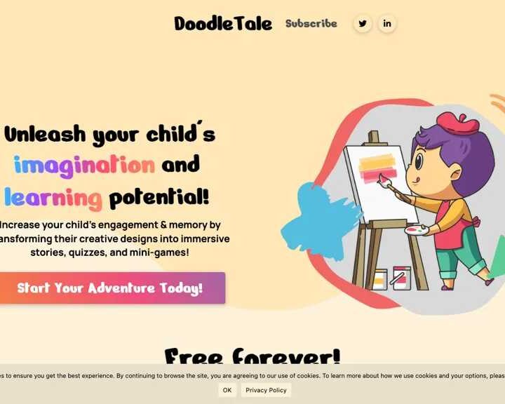 DoodleTale is an innovative AI Children Creativity App that revolutionizes how children express themselves. By harnessing cutting-edge artificial intelligence, this platform transforms your child’s unique drawings and designs into captivating, interactive experiences like personalized stories, engaging quizzes, and fun mini-games. Developed in collaboration with educators, DoodleTale provides a safe, imaginative, and stimulating environment designed to foster a lifelong love of learning and creativity in young minds.