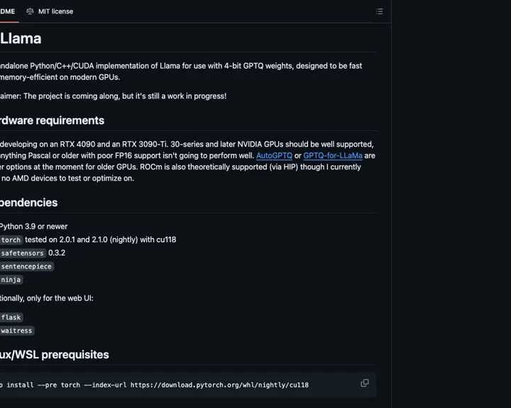 • Efficient AI Model Deployment: Deploy robust NLP applications powered by LLaMA on modern GPUs, even those with limited VRAM, thanks to its memory-saving design.