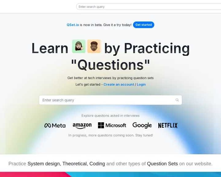 QSet.io offers an extensive question library covering critical technical topics. Engage in multifaceted practice sessions, including challenging coding problems, fundamental theoretical concepts, and intricate system design scenarios. Hone your problem-solving abilities and gain confidence for any technical interview.