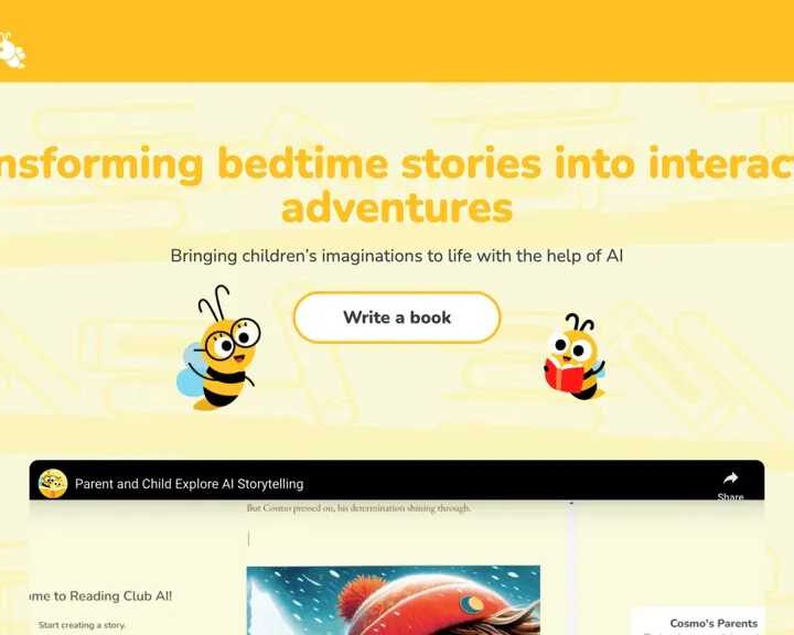 - Interactive Book Creation: Bring stories to life with AI-suggested illustrations, customizable characters that remain consistent across stories, and the ability to edit prompts and visuals.