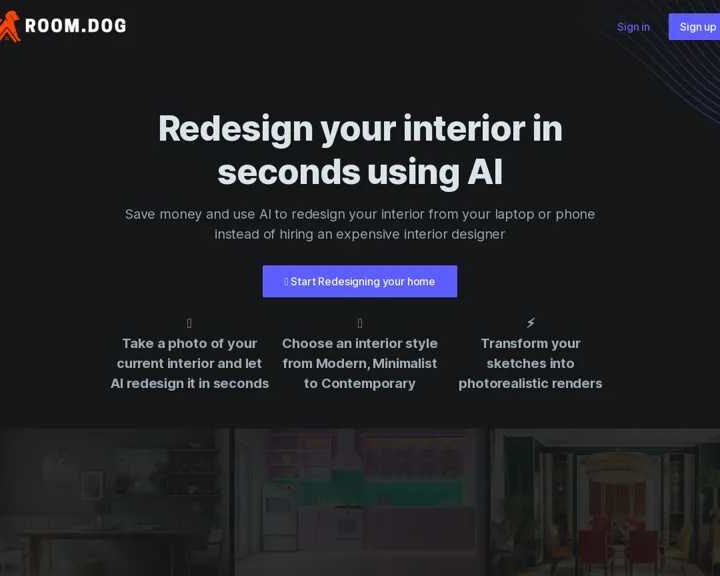 RoomDog stands at the forefront of AI-driven interior design, offering a powerful and intuitive platform to visualize and transform any room. Simply upload a photo of your current space and let RoomDog’s advanced technology generate stunning, photorealistic renders in minutes. Explore over 40 interior design styles, from chic modern and minimalist aesthetics to classic contemporary looks, and bring your dream interiors to life.
