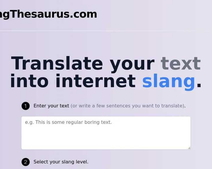 Understanding slang is crucial for effective communication, especially in online spaces, social media, and youth culture. Our AI tool helps you decode slang meanings and interpret colloquialisms in various contexts. It’s perfect for content creators looking to use slang authentically, international students navigating cultural differences, or anyone wanting to understand internet slang. Expand your knowledge of slang language and its cultural implications with swift and reliable translations.