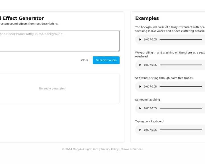 - Browser-Based Convenience: Generate sophisticated sound effects directly within your web browser.