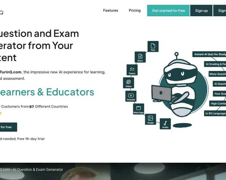 Turinq AI is an innovative SaaS platform that harnesses the power of artificial intelligence to streamline the process of creating exam questions and quizzes. Designed for educators and students, this cutting-edge tool simplifies generating high-quality assessment content from diverse sources like text, videos, audio files, PDFs, and PowerPoint documents. Automate your assessment creation with Turinq AI.