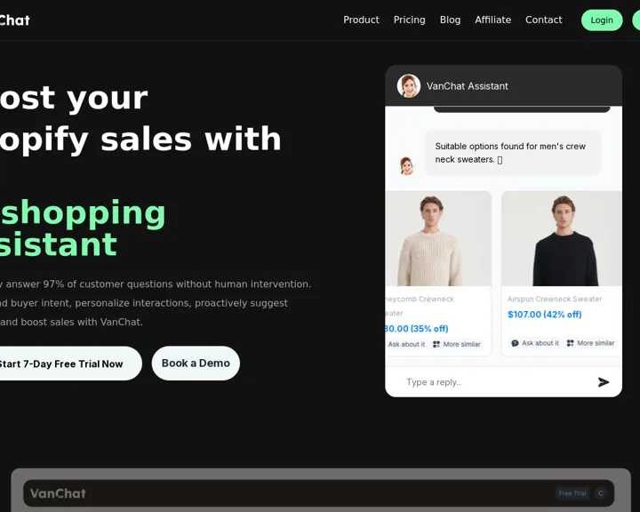 - Ecommerce Managers: Streamline customer service, boost efficiency, and drive measurable revenue growth with VanChat’s powerful AI capabilities.
